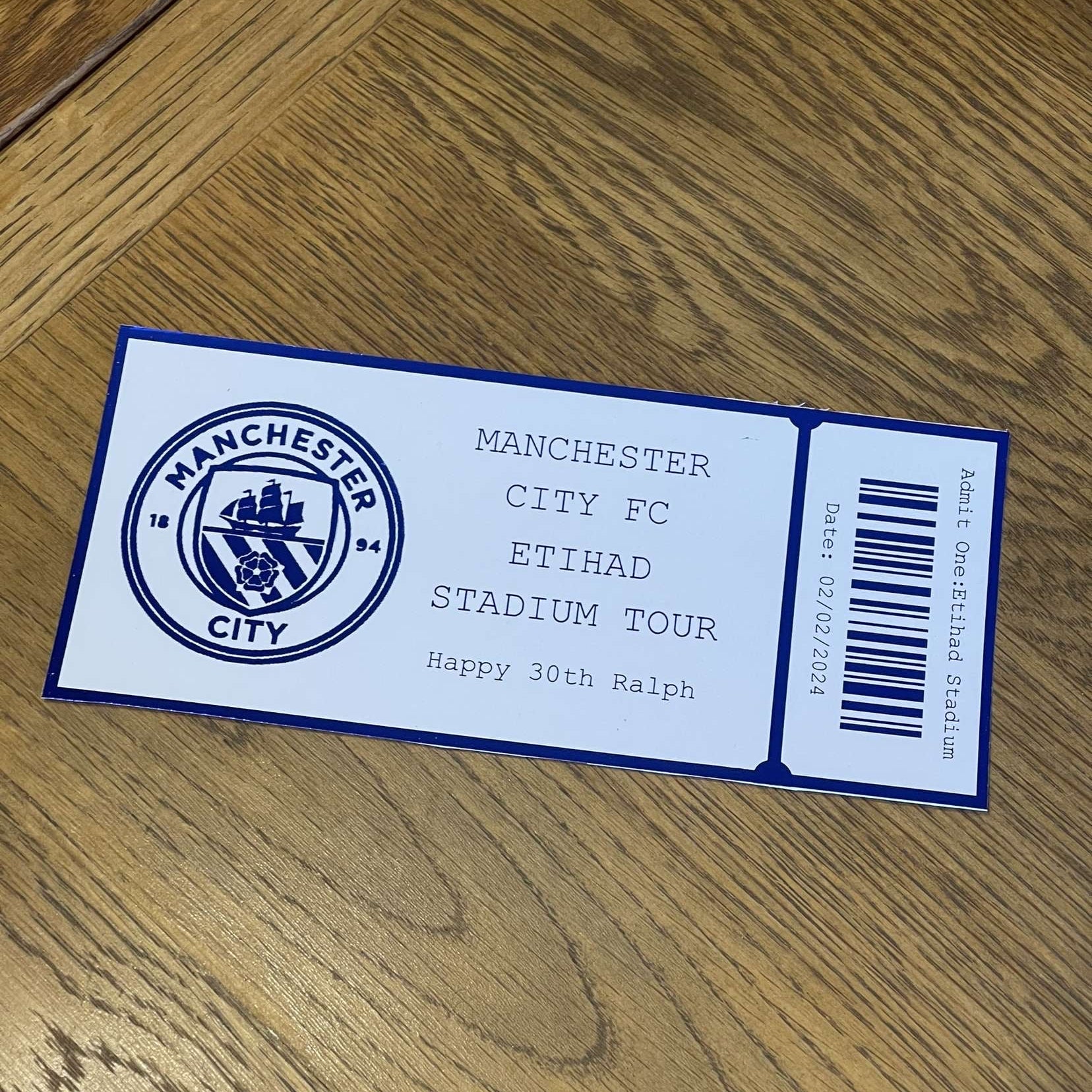 Personalised Football Stadium Tour Foil Ticket