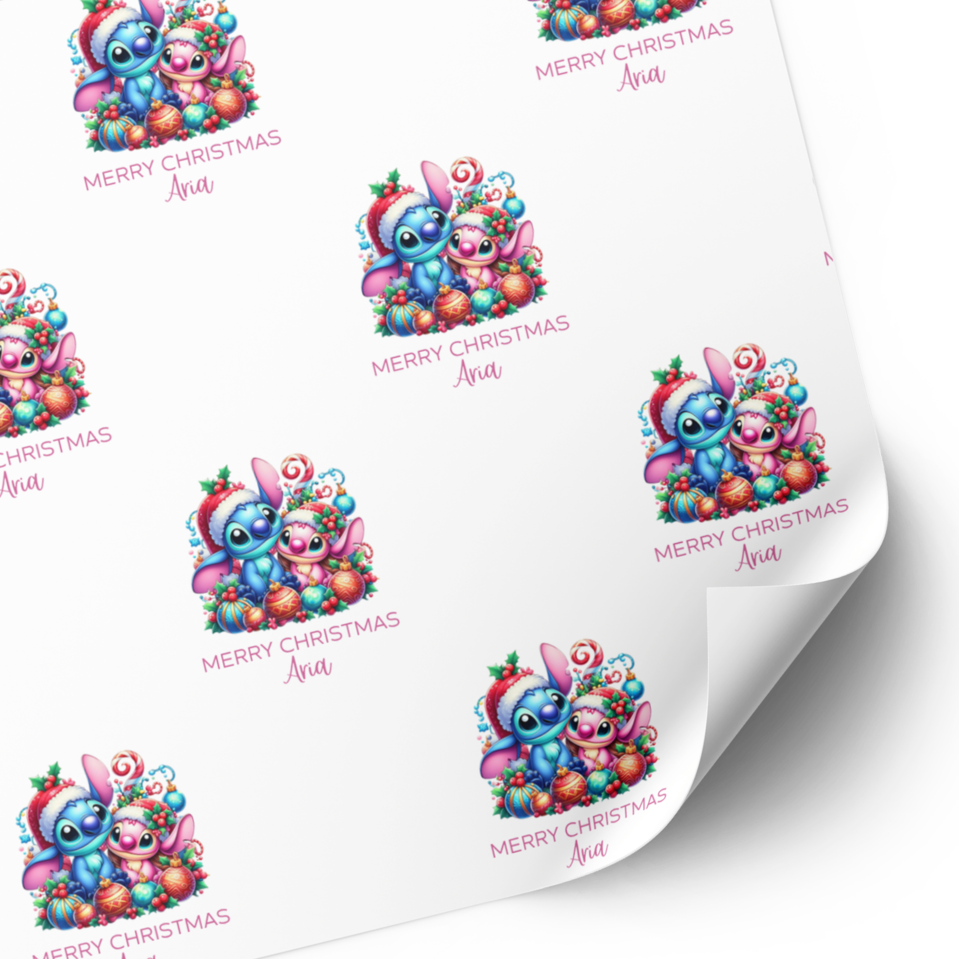 Personalised Stitch & Angel Christmas Wrapping Paper