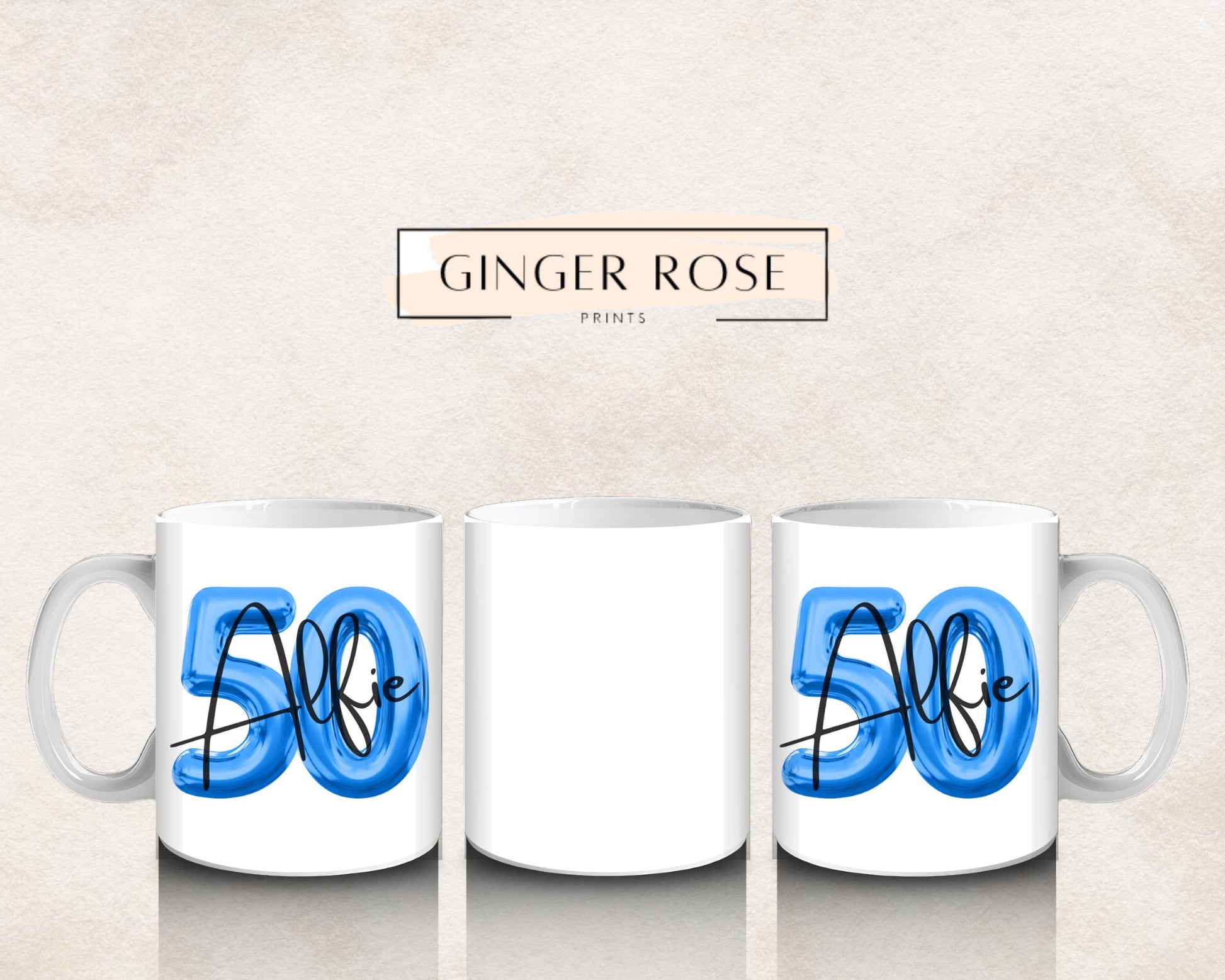 Personalised 50th Birthday Mug, 11oz Mug, Personalised Mug, Name Mug, Balloon Mug Personalised Birthday Gift